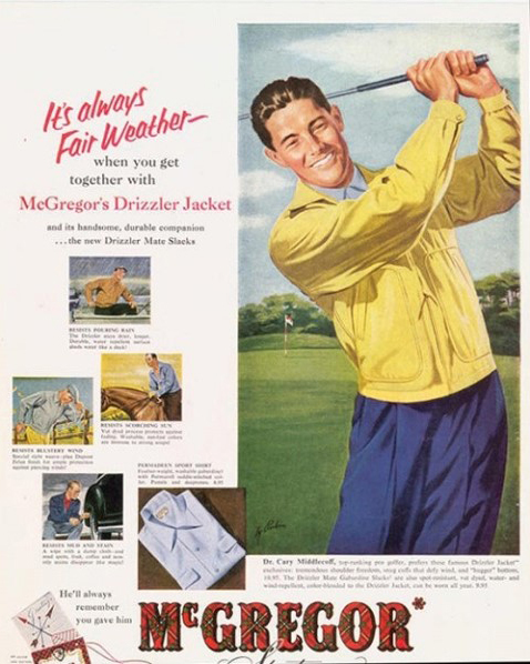高爾夫這項運動必須要在戶外進行,而英國綿綿細雨的天氣常常讓球場上的打者需要穿著雨衣。當時的雨衣剪裁幾乎都是長版為主,揮桿往往無法這麼俐落。Miller 兄弟因此設計了一款短版的防水拉鍊夾克,這款夾克除了防水,還具有足夠的自由度,穿著它完全不會影響打高爾夫的動作。